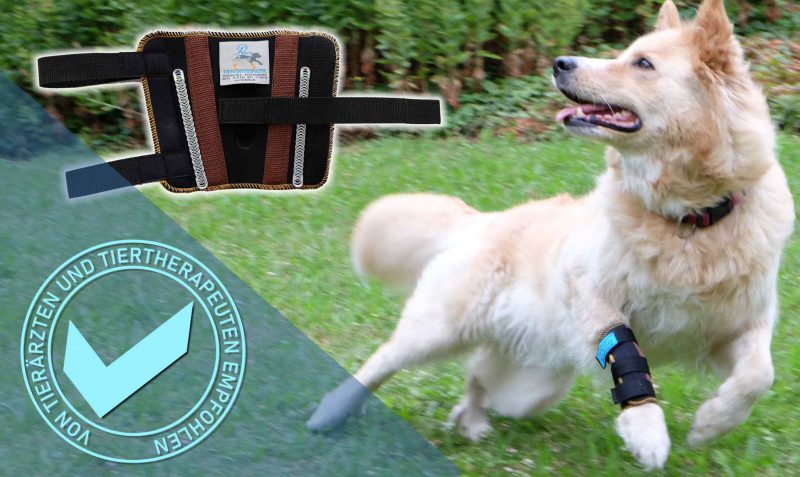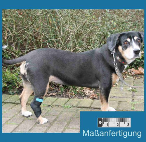 Eine Bewegungseinschränkung der Vorderläufe wird über die Manschetten erreicht. Die Schrittlänge sowie ein Abspreizen der Vorderläufe kann dadurch reduziert werden.